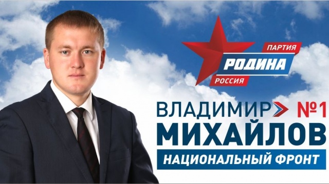 "18 сентября вы не просто идете на выборы и ставите галочку у фамилии или партии - вы несете ответственность за изменения в вашем селе, городе и даже в стране. Если мы действительно хотим перемен, то надо быть готовыми действовоать или хотя бы помочь тем, кто уже встал на этоу тяжелую тропу. Прошу вас поддержать партию "РОДИНА", которая идет под Первым номером в бюллетени, а также кандидатов от партии "РОДИНА". Партия РОДИНА-НАЦИОНАЛЬНЫЙ ФРОНТ-мы вместе с Вами идем во власть. Победив на выборах мы докажем правильность вашего выбора" - обратился к своим избирателям Владимир Михайлов.