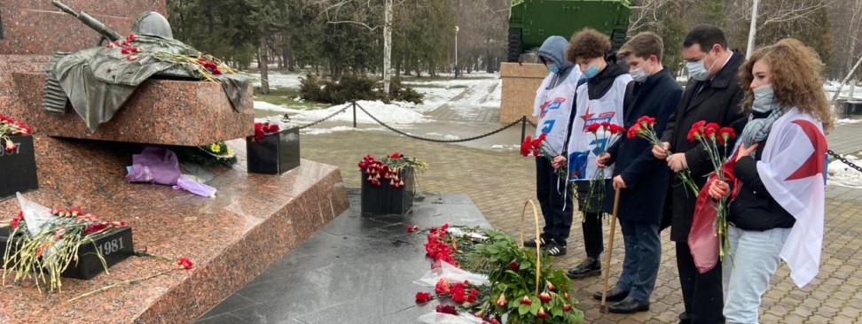 Краснодарские партийцы, молодежные активисты партии и движение «Новый рубеж» возложили цветы к мемориалу воинов-интернационалистов в честь празднования Дня защитника Отечества.
