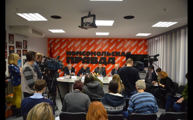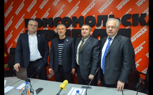Пресс-конференция партии "РОДИНА" в новосибирской редакции "Комсомольской правды". На фото: депутат горсовета Вячеслав Илюхин, лидер "РОДИНЫ" Алексей Журавлёв, член Бюро Президиума партии Алексей Рылеев, глава Новосибирского регионального отделения "РОДИНЫ" Александр Люлько.