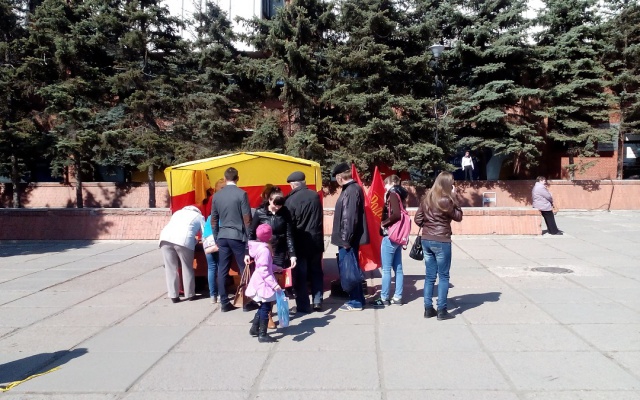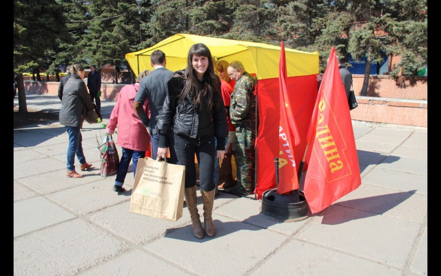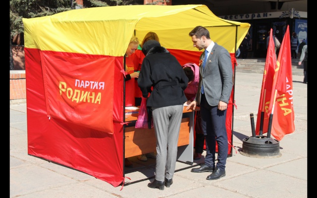 29 апреля омские социал-патриоты приобщились к акции «Нерушимый Союз». На площади у ТЦ «Омский» была выставлена палатка партии «РОДИНА», где каждый подписавший открытку с пожеланиями ветерану Великой Отечественной войны, проживающему на Украине, мог получить георгиевскую ленточку и флажок партии «РОДИНА».