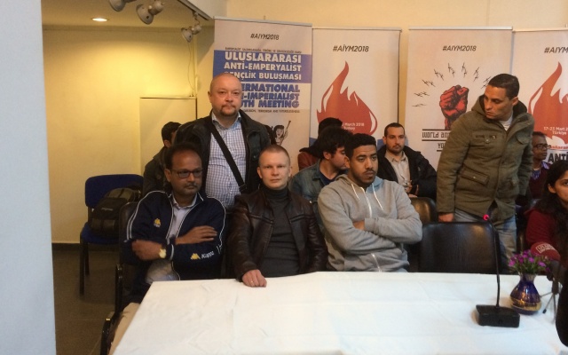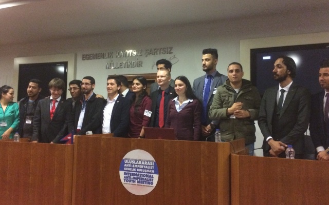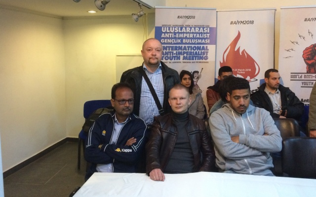 Международный антиимпериалистический молодежный конгресс проходит под эгидой Молодежного союза Турции (TGB) в Стамбуле и Анкаре 17-23 марта. На форум приехали 1200 человек из 25 стран Европы, Азии, Южной Америки и Северной Африки. Слоган мероприятия: "Против агрессии, терроризма и бесперспективности".