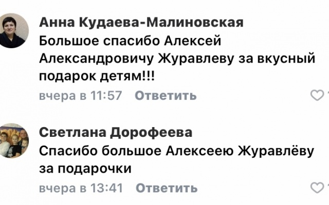 В канун Старого Нового года Алексей Журавлев порадовал детвору сладкими подарками.