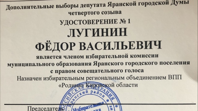 Также в единый день выборов 13 сентября Федор Лугинин лично возглавил партийный "патруль бдительности" в Яранске, где родинцы мониторили ситуацию на участках вживую, и вошел в состав городского избиркома с правом совещательного голоса. Партийный лидер поблагодарил соратников-кандидатов за активную гражданскую позицию, пожелал успехов в общих начинаниях, суть которых – в выполнении наказов земляков и достижении намеченных целей.