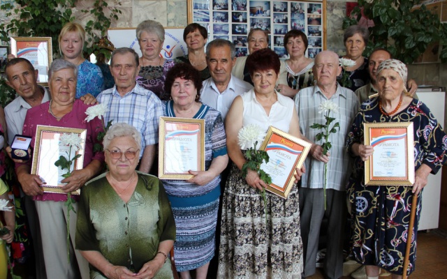 За большим праздничным столом собрались супружеские пары, многие из которых прожили в браке более полувека. Во время застолья, в непринуждённой и дружеской беседе, они делились секретами семейного долголетия, вспоминали яркие эпизоды и знаменательные события своей совместной жизни.