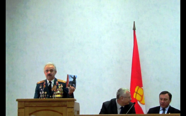 Фёдор Иванович представил делегатам Конференции роман "Танкоград", написанный родинцем Александром Кожейкиным в канун 70-летия Великой Победы, и изданным при поддержке Регионального отделения партии "РОДИНА".