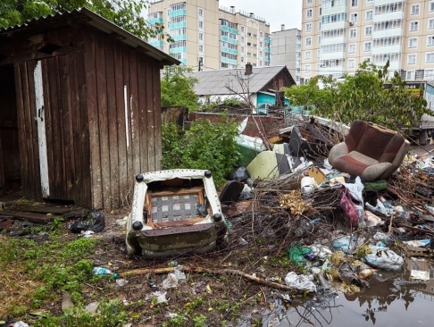 На улице Новой в Красноярске несколько лет жители не могут добиться ликвидации стихийной свалки, которая возникла на месте сгоревших сараев. В одной из уцелевших построек дети устроили шалаш.