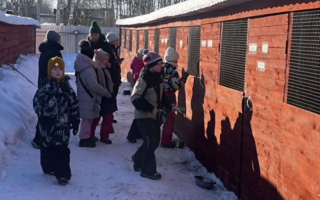 Школьники посетили площадку временного содержания безнадзорных животных "Хвостатые друзья" в жилом районе Пашино города Новосибирска.