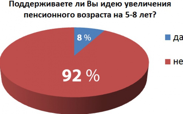 Из опрошенных более 1 000 новомосковцев подавляющее большинство – 92 % — высказалось против повышения пенсионного возраста.
